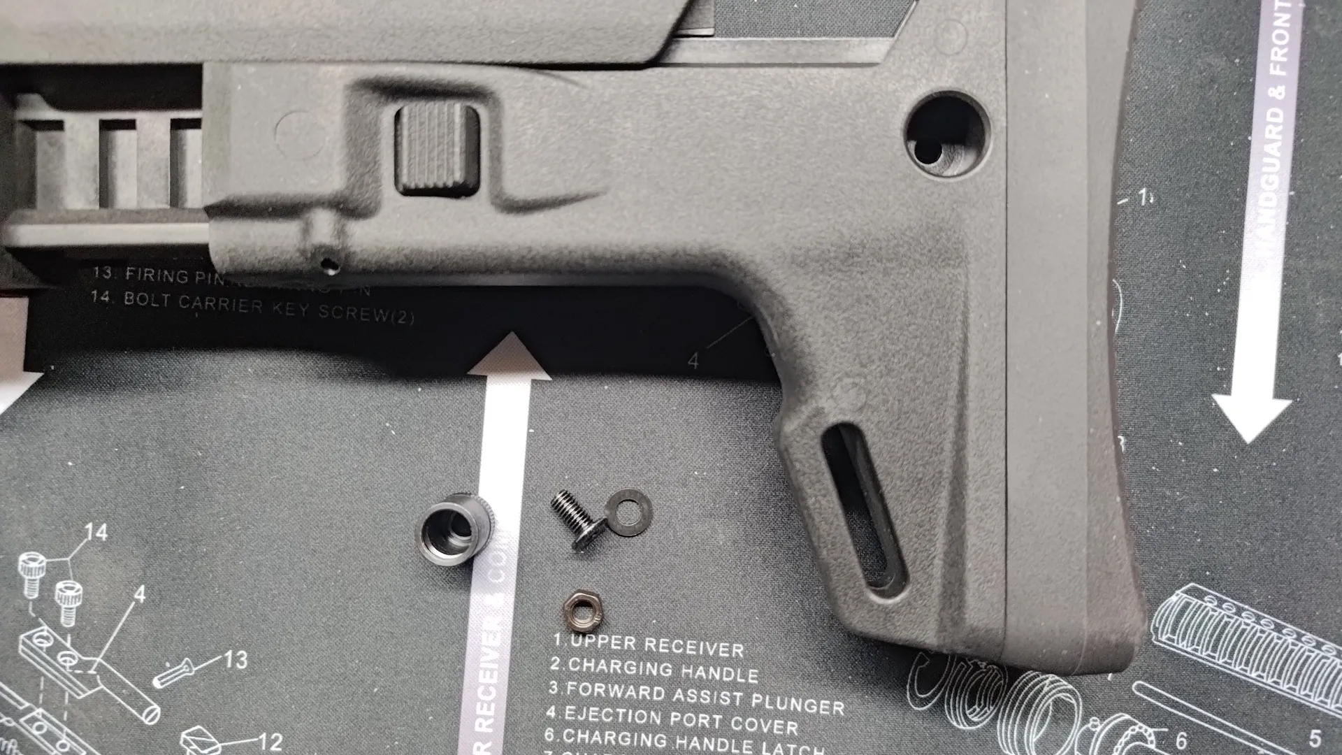 すでにストック部分が20mmレール用になっていますが、通常のストックでも交換方法は同じです。