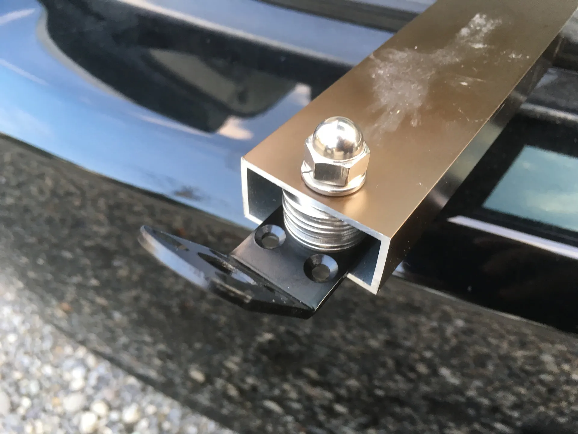 なお、このステーの場合、長穴になっているので取り付け時に奥に行ったり外に出たりしますが、今回は外側に出して締めました。
