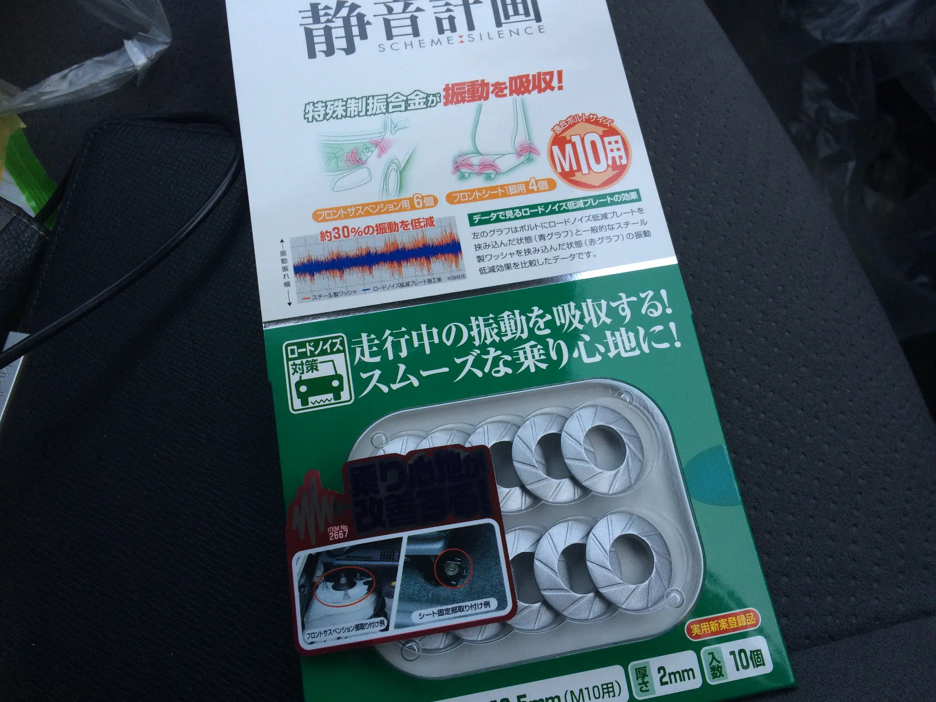 とりあえず10個入りを購入してきたので運転席4ヶ所とフロントサスペンション6ヶ所に取り付けてみました。