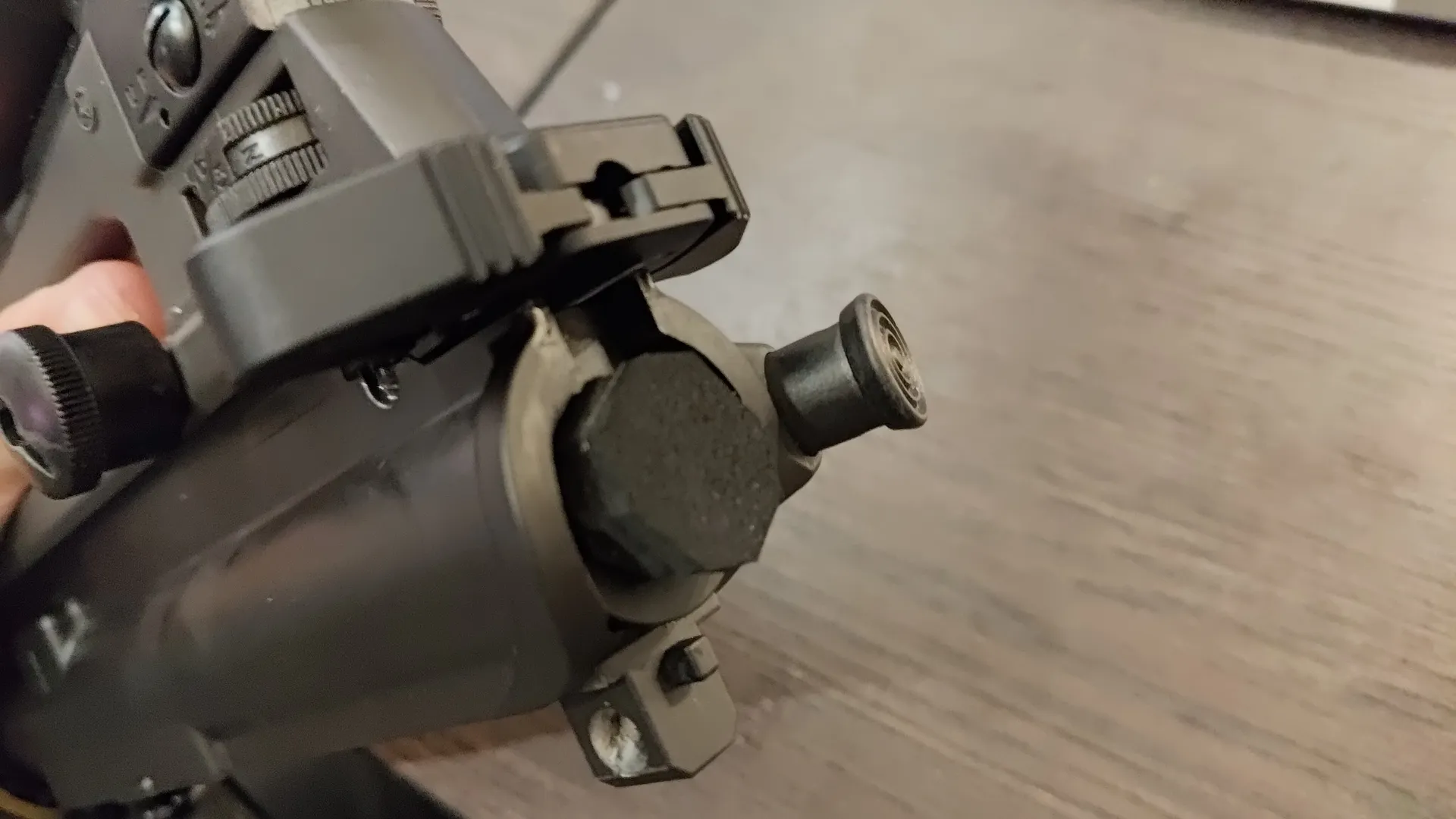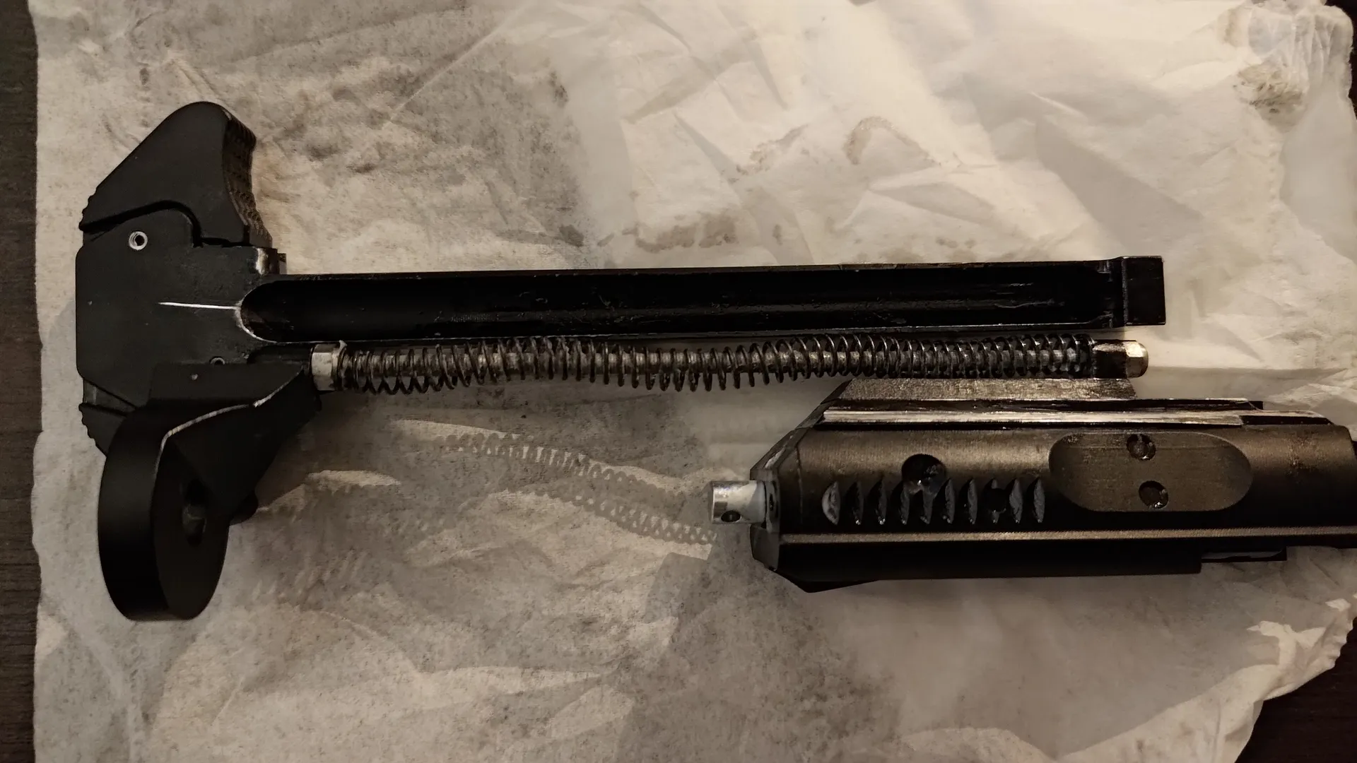 あとはシャフトが短くなったので、受け部分がアッパーレシーバーよりも少し奥にいって、ロアレシーバーと少し隙間が余ったので、あまり意味はないとは思いますが、負荷対策として適当なスポンジシートを貼っておきました。