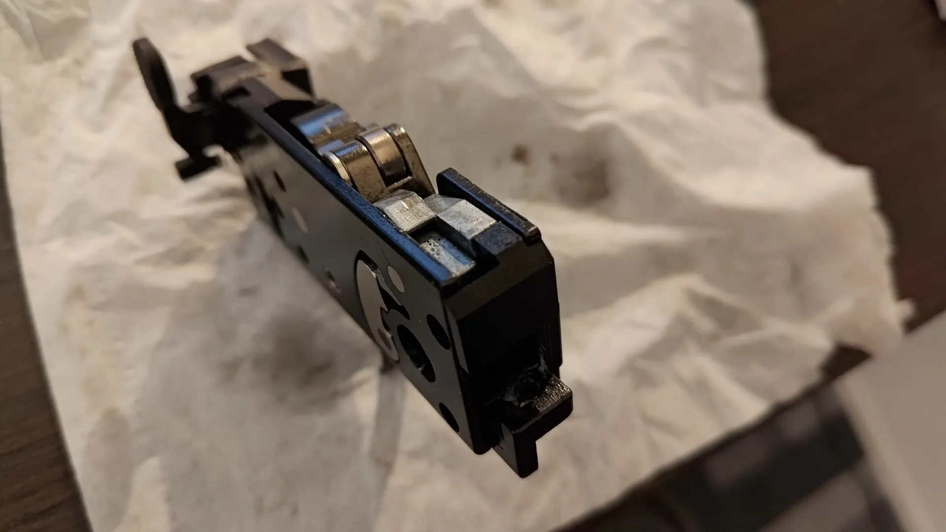 これ動作上重要なパーツで、これを組み込まないとコッキング後にトリガーが引けません。