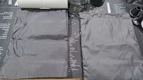 これは大きさ自体は同じですが、SEと無印では別のものが付属しており、SEのほうは普通の巾着袋みたいな物がついてきて、無印のほうでは防水っぽい素材のものがついてきています。