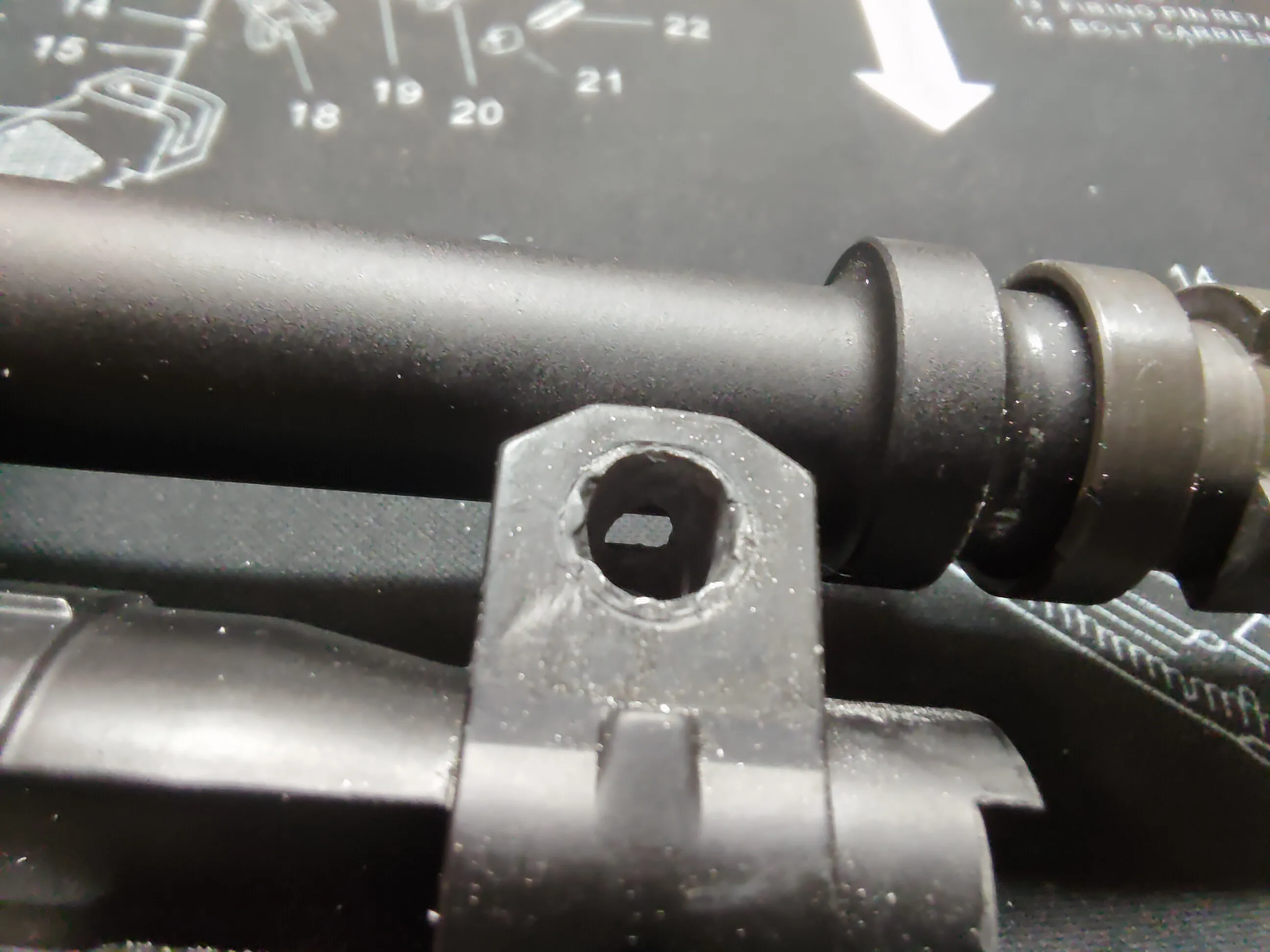 ハンドガードが水平になる状態にして穴の位置を確認してみると、結構ズレているようです。