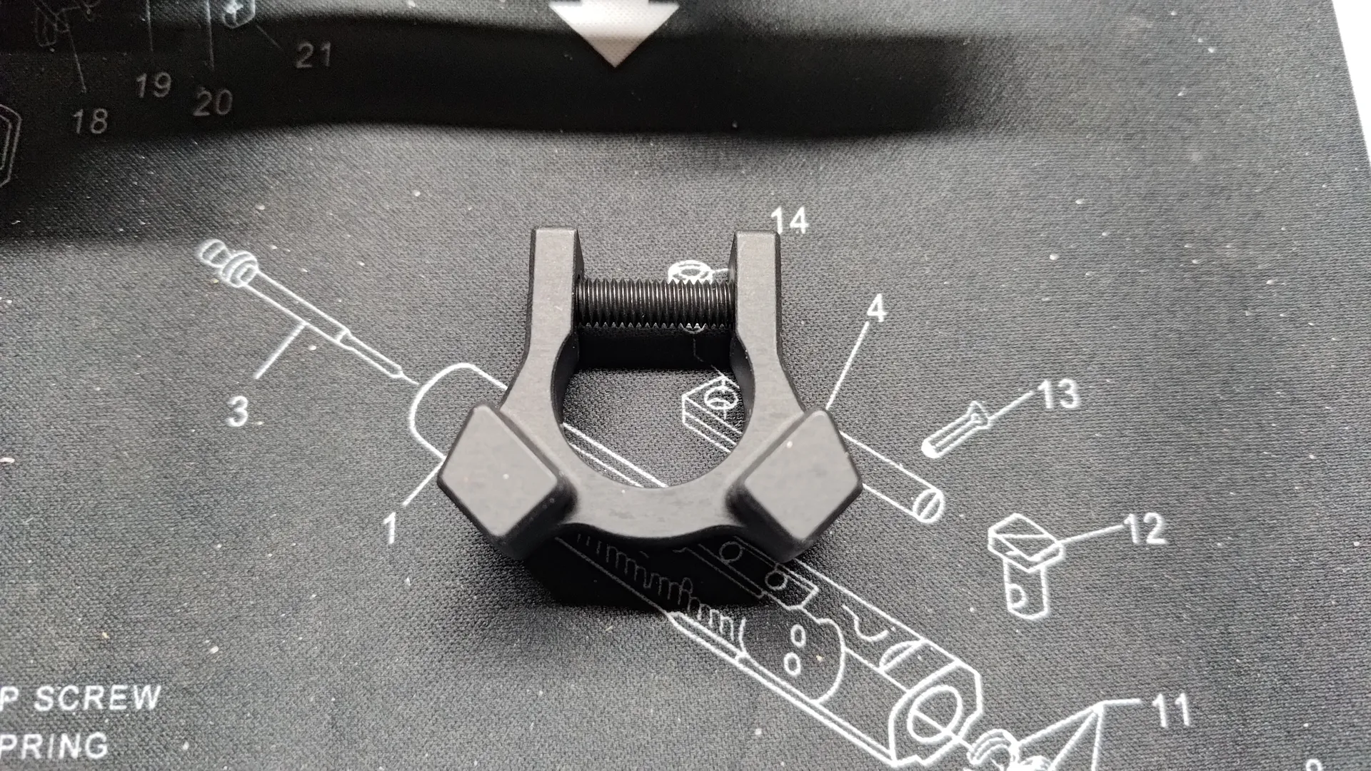 形状の関係で、この固定金具をハンドガードや本体に先に固定してしまうとハンドガードがはめ込めなくなるため、フリーの状態で組み込んでいくため、少々面倒です。