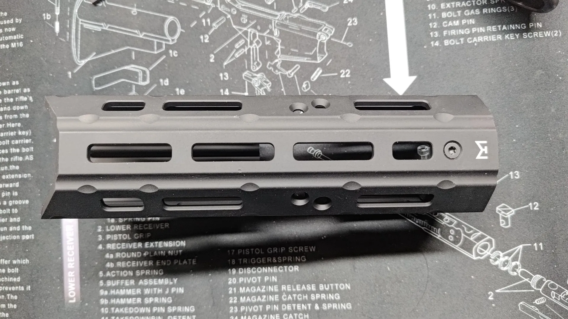 MIのハンドガードは他にもMCX RATTLER用のSDハンドガードを購入したことがありますが、その時も同様に樹脂製レール(5スロット)とロゴシールが付属してきたので、基本どのハンドガードにも付属しているんですかね?(レールはM-LOKハンドガードのみでしょうけど)